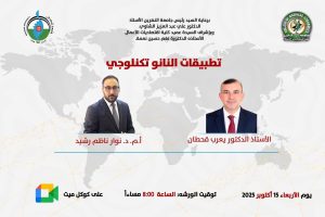 الندوة التي قدّمها الأستاذ الدكتور يعرب قحطان، الباحث في تقنيات النانو والطاقة المتجددة من ماليزيا، تناولت أحدث التطورات في هذا المجال الحيوي، مع التركيز على دور المواد النانوية في دعم الاستدامة والاقتصاد الأخضر وتعزيز كفاءة الإنتاج الصناعي.